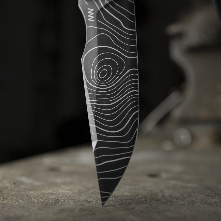 - Klinge aus Elmax-Stahl mit DLC-Finish