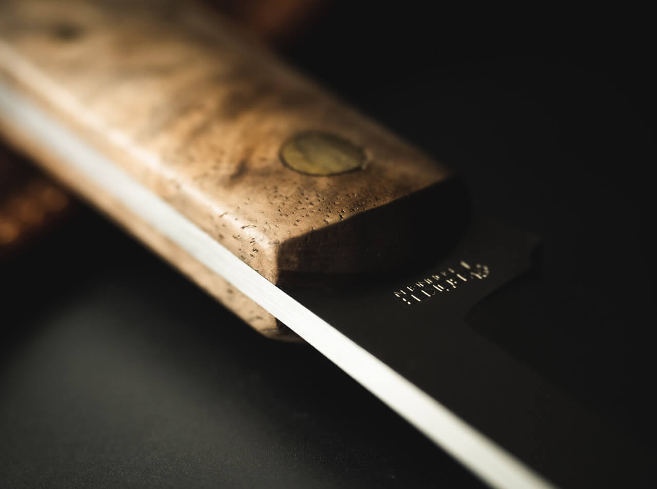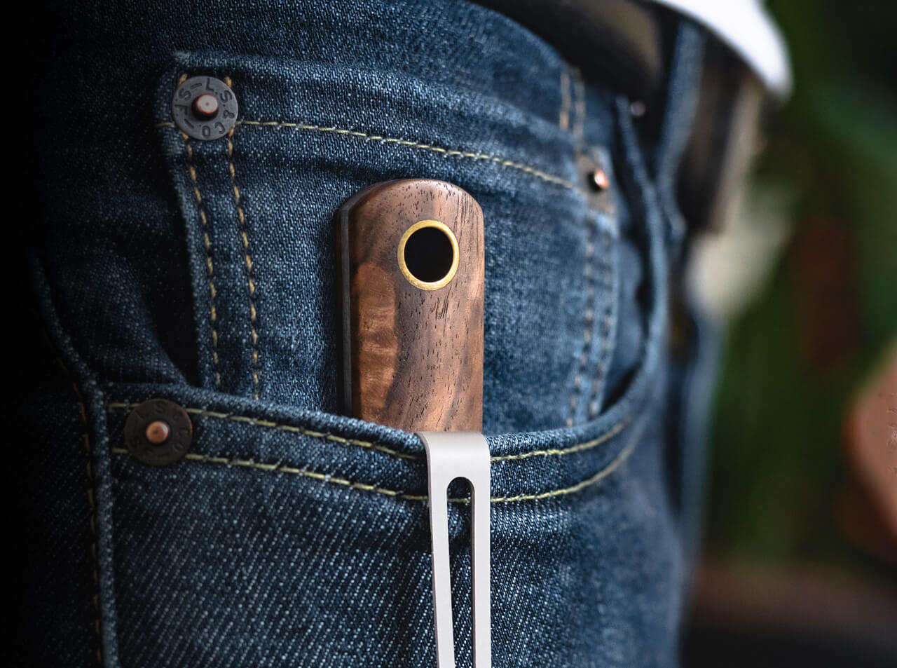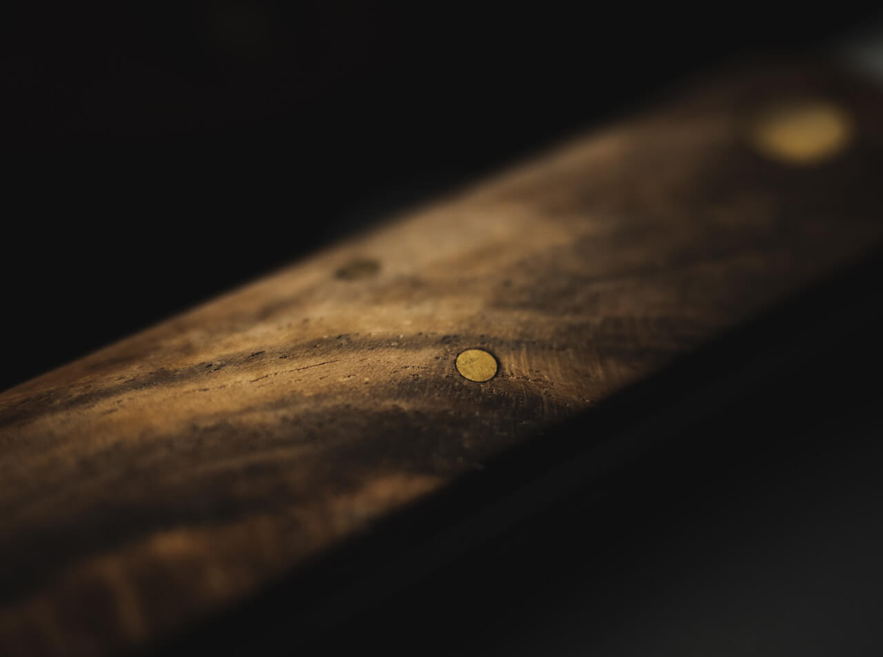 Der Griff des BFF ist so universell geformt, dass sowohl kleine als auch etwas größere Hände hier mühelos Platz finden. Nur wenn du ausgesprochen große Pranken hast, könnte es hier möglicherweise knapp werden. Das Walnussholz ergibt einen tollen optischen Kontrast zu den Pins aus Messing. Wenn du einen Bead anbringen möchtest, kannst du dies dank der großen Hohlniete am Griffende tun.