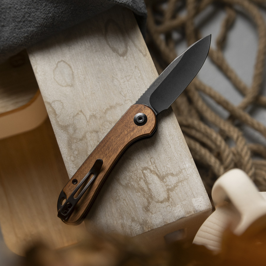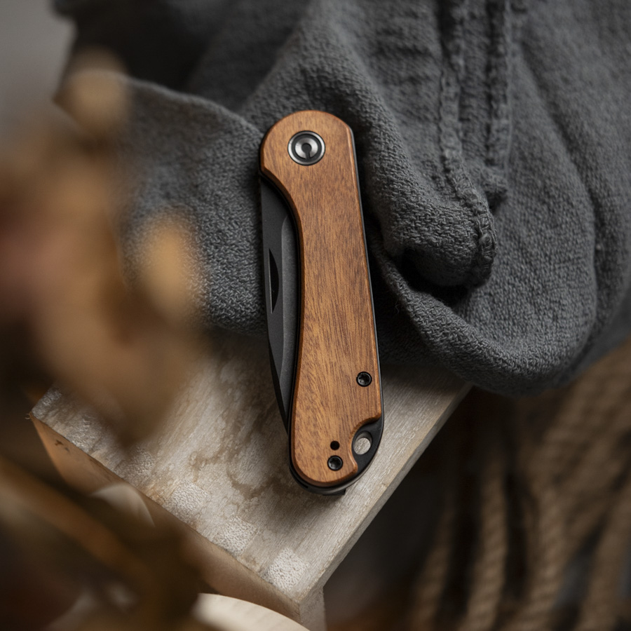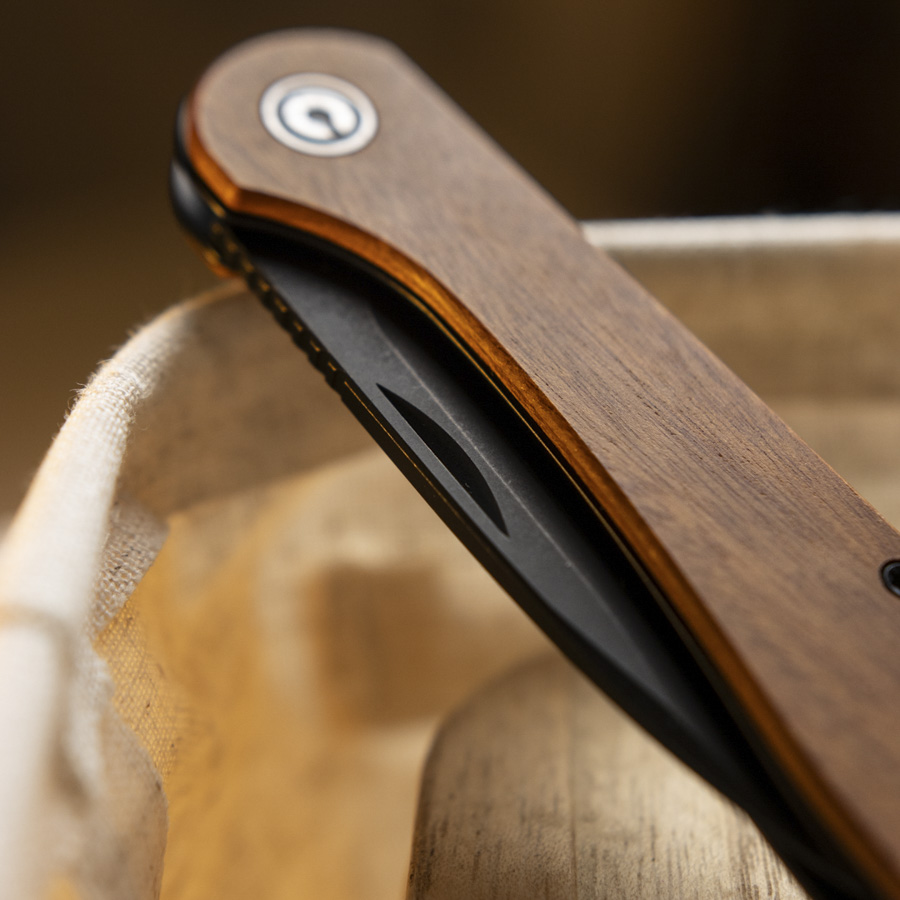 Der Griff basiert auf präzise gefrästen Stahllinern mit abgerundeten Kanten – für eine perfekte Ergonomie ohne Druckstellen. Und natürlich hast du die Wahl zwischen verschiedenen Griffmaterialien, die zu deinem Stil passen: Micarta, Carbon, Guibourtia Wood oder Blue Ocean Resin (macht optisch richtig Alarm!). Das dezente Civivi-Logo auf dem Konterstück der Achsschraube sorgt für eine cleane Ästhetik – die Klinge bleibt frei von unnötigen Beschriftungen.