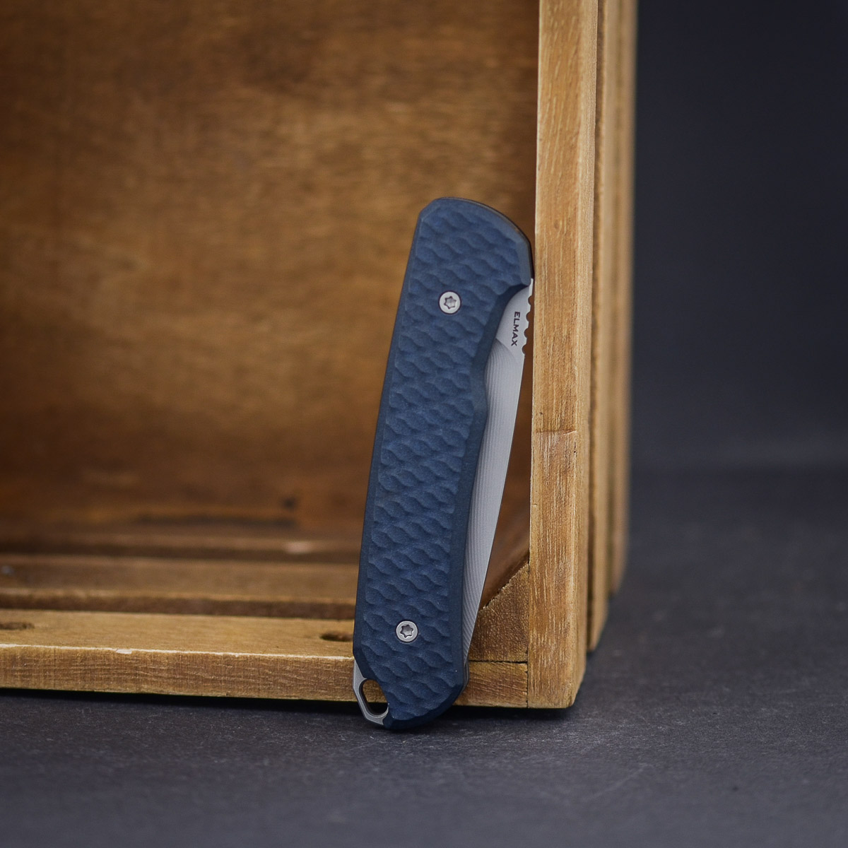 Schon beim ersten Öffnen merkst Du, dass hier nichts dem Zufall überlassen wurde: Die Klinge aus Elmax-Stahl läuft kontrolliert auf Washern über zwei Zwischenstufen, bevor sie mit einem satten „Klack“ einrastet. Die kräftige Federspannung sorgt nicht nur für Sicherheit, sondern auch für dieses bewusste, fast ritualisierte Öffnen und Schließen – ein Moment, den Marcin selbst besonders schätzt.