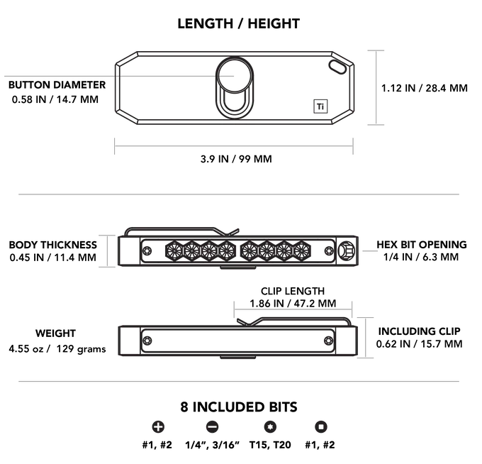 - Combination of bit screwdriver & bit holder made of titanium