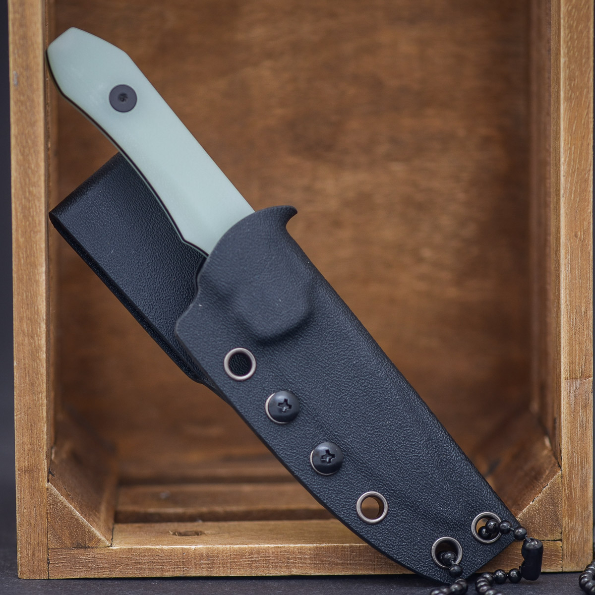 - Supplied with Kydex sheath, ball chain, belt adapter and in-the-pocket clip