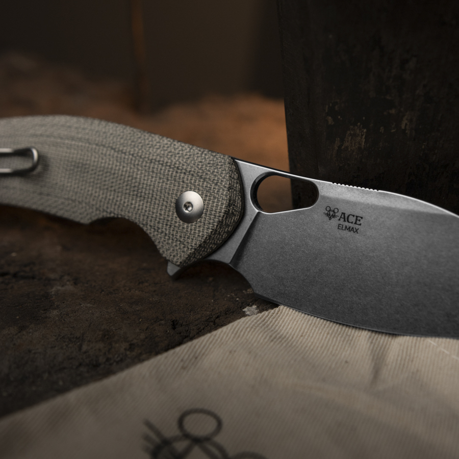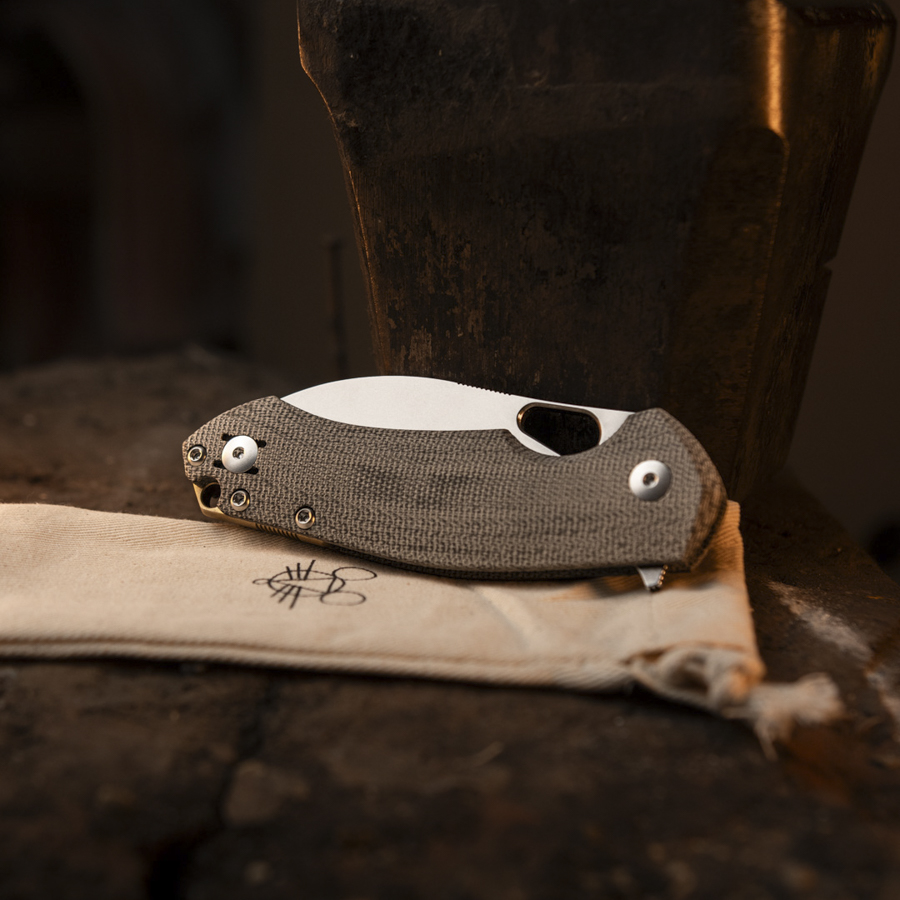 GiantMouse uses two different alloys for the blade material: while the Micarta version uses good old Elmax, the titanium version has a blade made of Vanax steel. This alloy, produced using a powder metallurgical process, is equally rust-resistant, tough and edge-holding, making it an excellent choice for an all-purpose knife. The very high flat grind and the fine bevel give the Biblio a great cutting performance that can handle just about any everyday task.