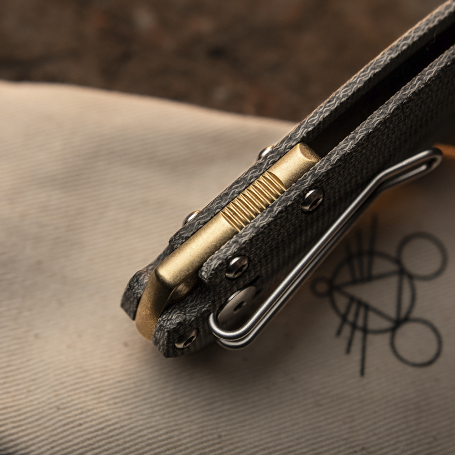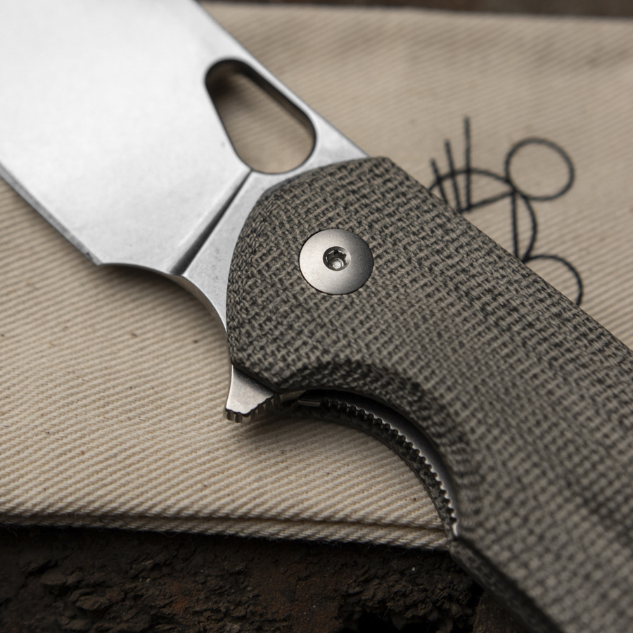 - Handle made of green canvas micarta or textured titanium