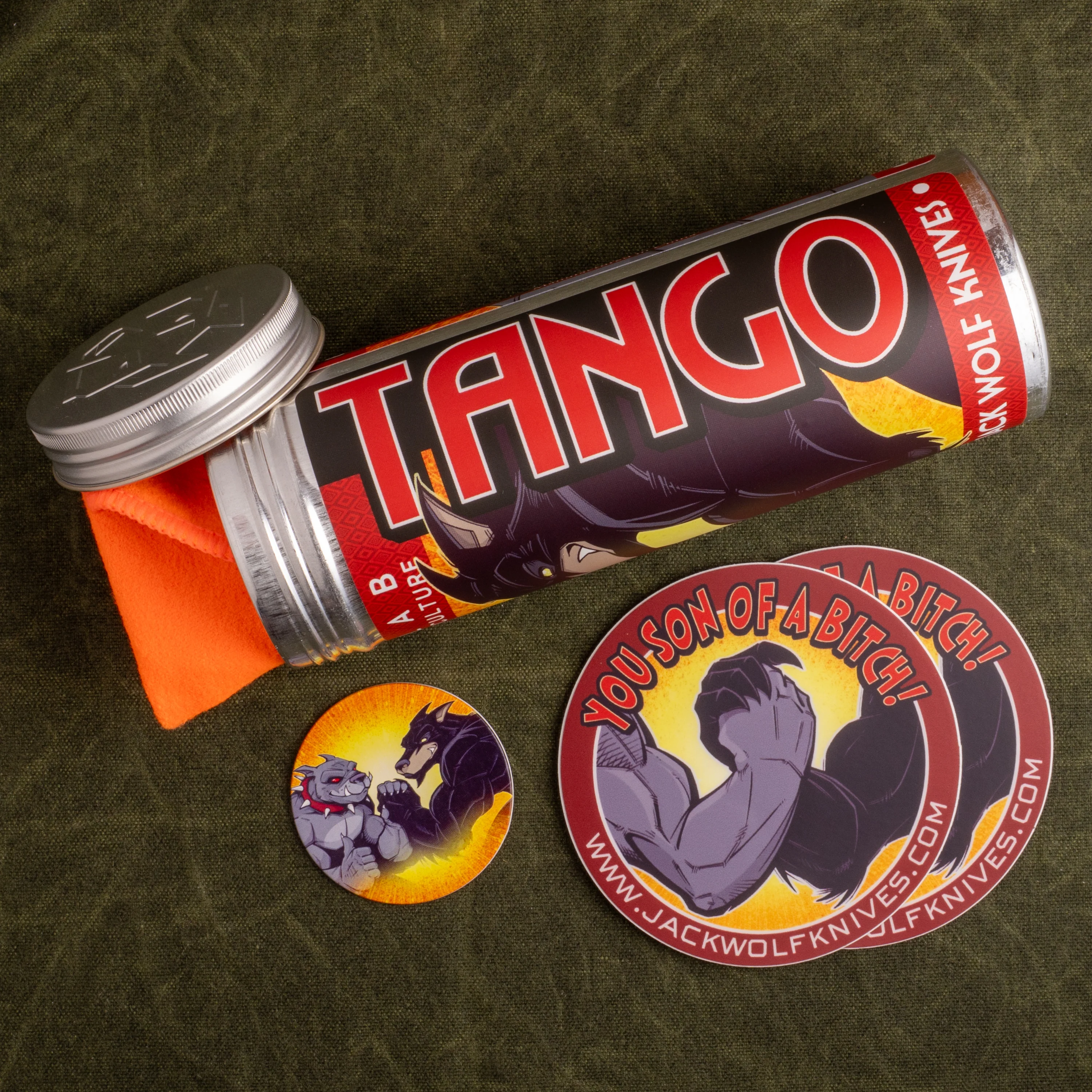 1st tube You will receive the knife in a tin. Each tin has a drawing to match the knife. Ben was able to win over Marvel artist Sean Tiffany for this.