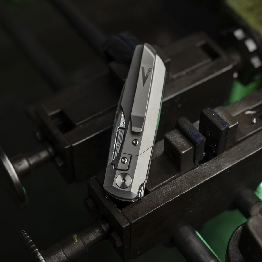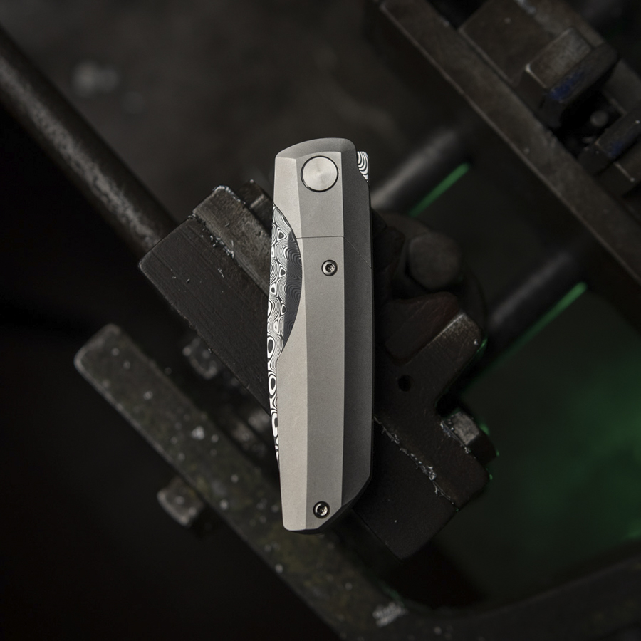 Synapse with a blade made of Damasteel damascus.