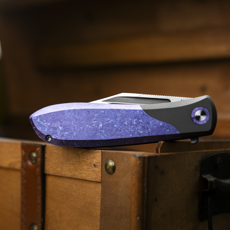 Die Klinge aus S90V-Stahl ist etwas kräftiger gehalten, damit die Spitze auch bei härteren Einsätzen stabil bleibt. Dank Hohlschliff schneidet sie trotzdem scharf wie der Colt von Doc Holliday. Zum ersten Mal bei Jack Wolf gibt’s hier einen Flipper Tab, kombiniert mit einem Fuller auf beiden Klingenseiten – das fühlt sich so smooth an wie das Durchladen eines Revolvers.