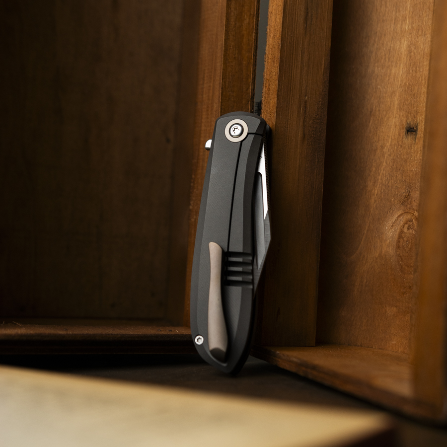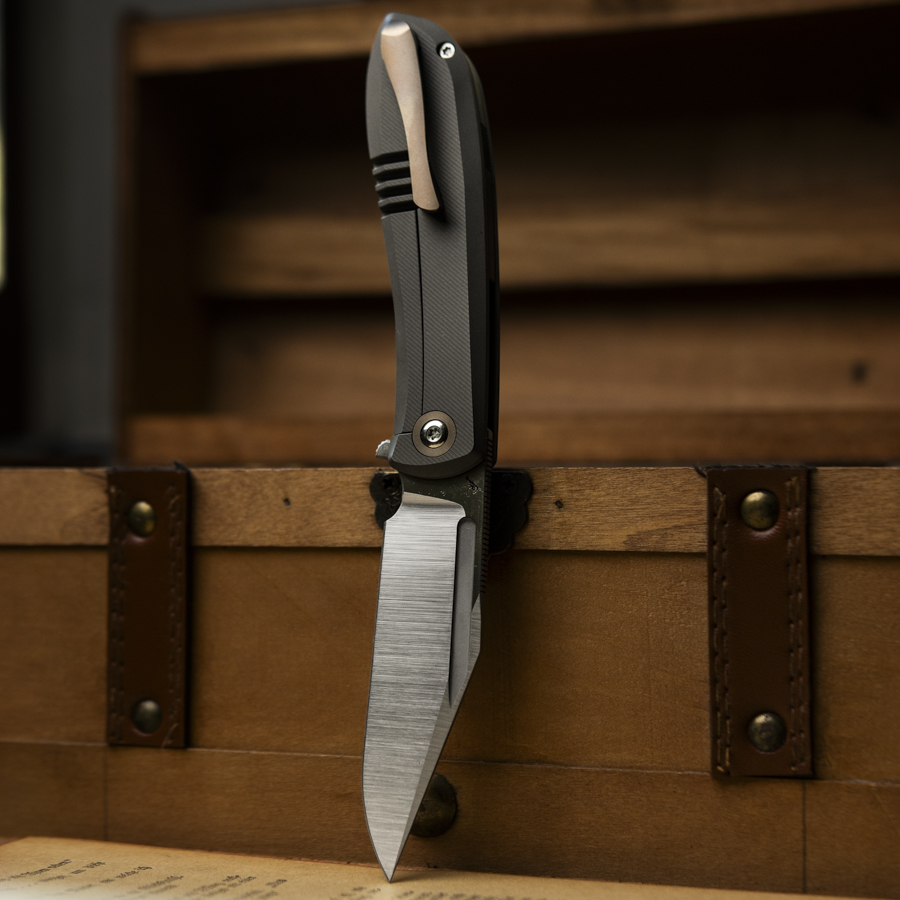 Die Klinge aus S90V-Stahl ist etwas kräftiger gehalten, damit die Spitze auch bei härteren Einsätzen stabil bleibt. Dank Hohlschliff schneidet sie trotzdem scharf wie der Colt von Doc Holliday. Zum ersten Mal bei Jack Wolf gibt’s hier einen Flipper Tab, kombiniert mit einem Fuller auf beiden Klingenseiten – das fühlt sich so smooth an wie das Durchladen eines Revolvers.